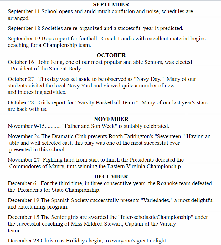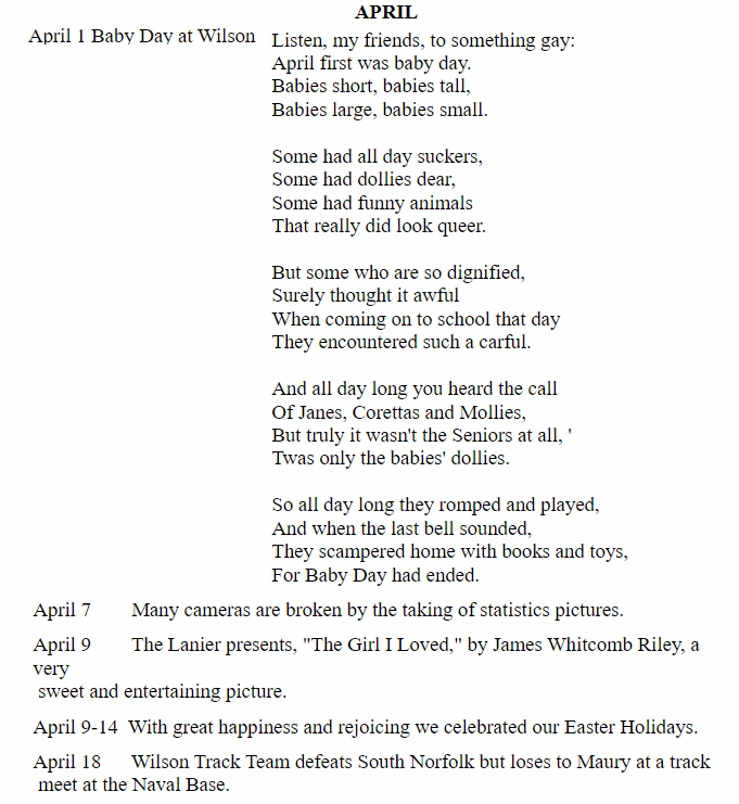 The Class Roster and pictures are as represented in the Woodrow Wilson High School, Portsmouth, Virginia yearbook or annual of the year indicated on the page.  The Roster may not be complete and pictures and names may have been removed by request of the person involved. Also, it does not officially indicate the year of graduation and/or that the party in question graduated.  If you are not represented in your class, you will be added to the last page of the year and you may submit a photo to be added.  All information on these pages came from the yearbook represented and alumni who have passed on information and may not be accurate.