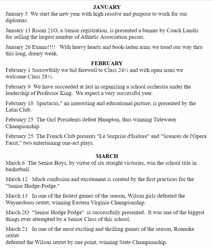 1925 Class History